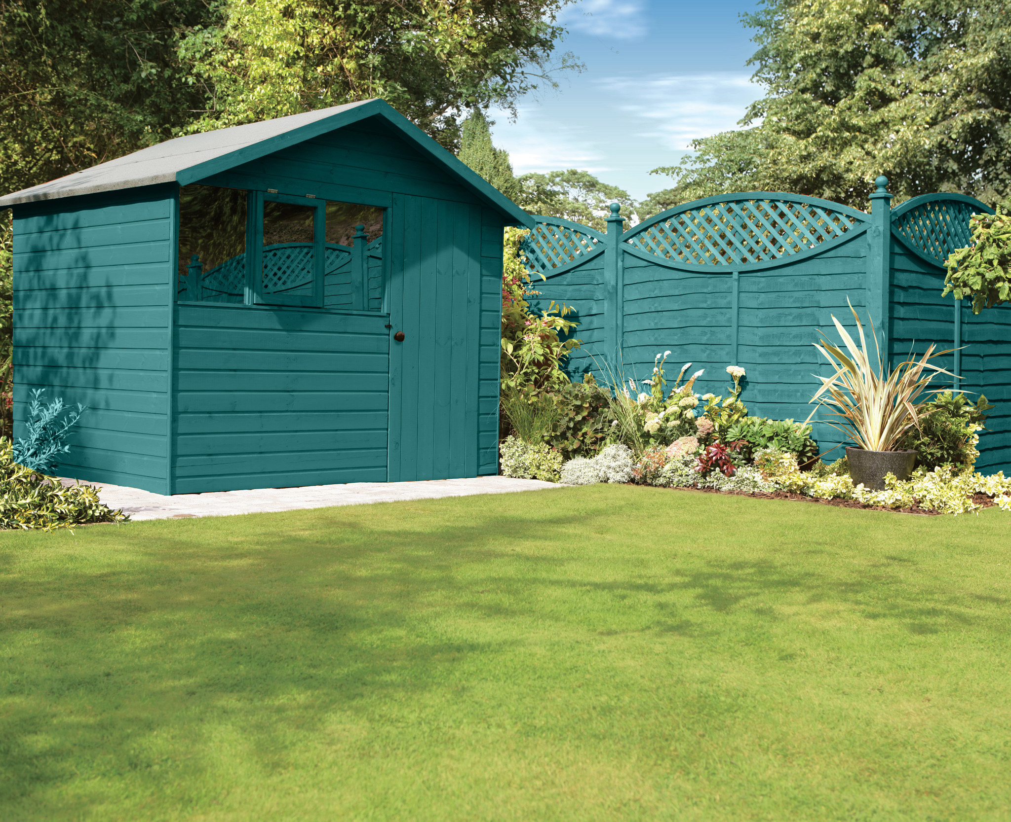Teal is yet another colour that’s trending in the world of design. It’s strong and saturated yet sits comfortably in most garden schemes. This makes it one of the most versatile shed colour ideas.