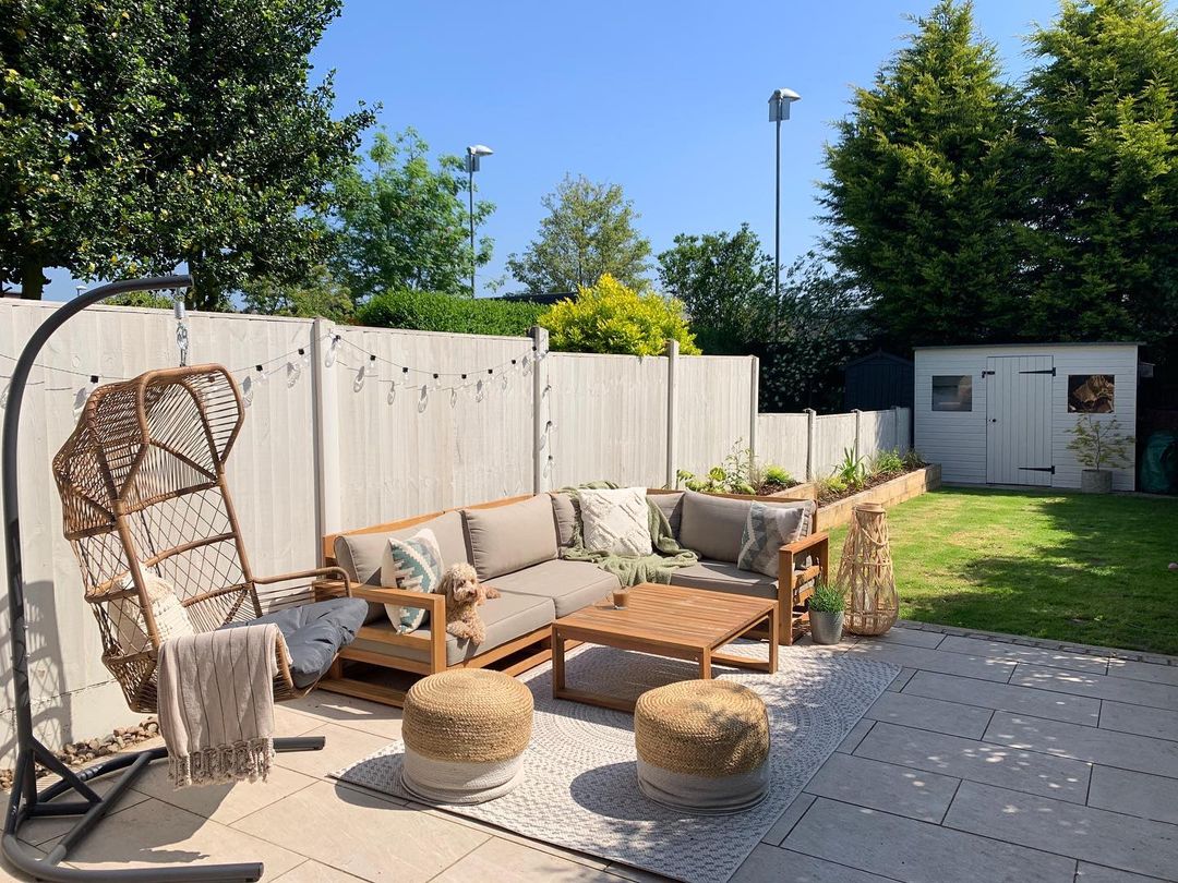 Top tip: Red is a statement shade. Lean into this and keep the colour flowing throughout your fence and furniture for a high impact garden design.