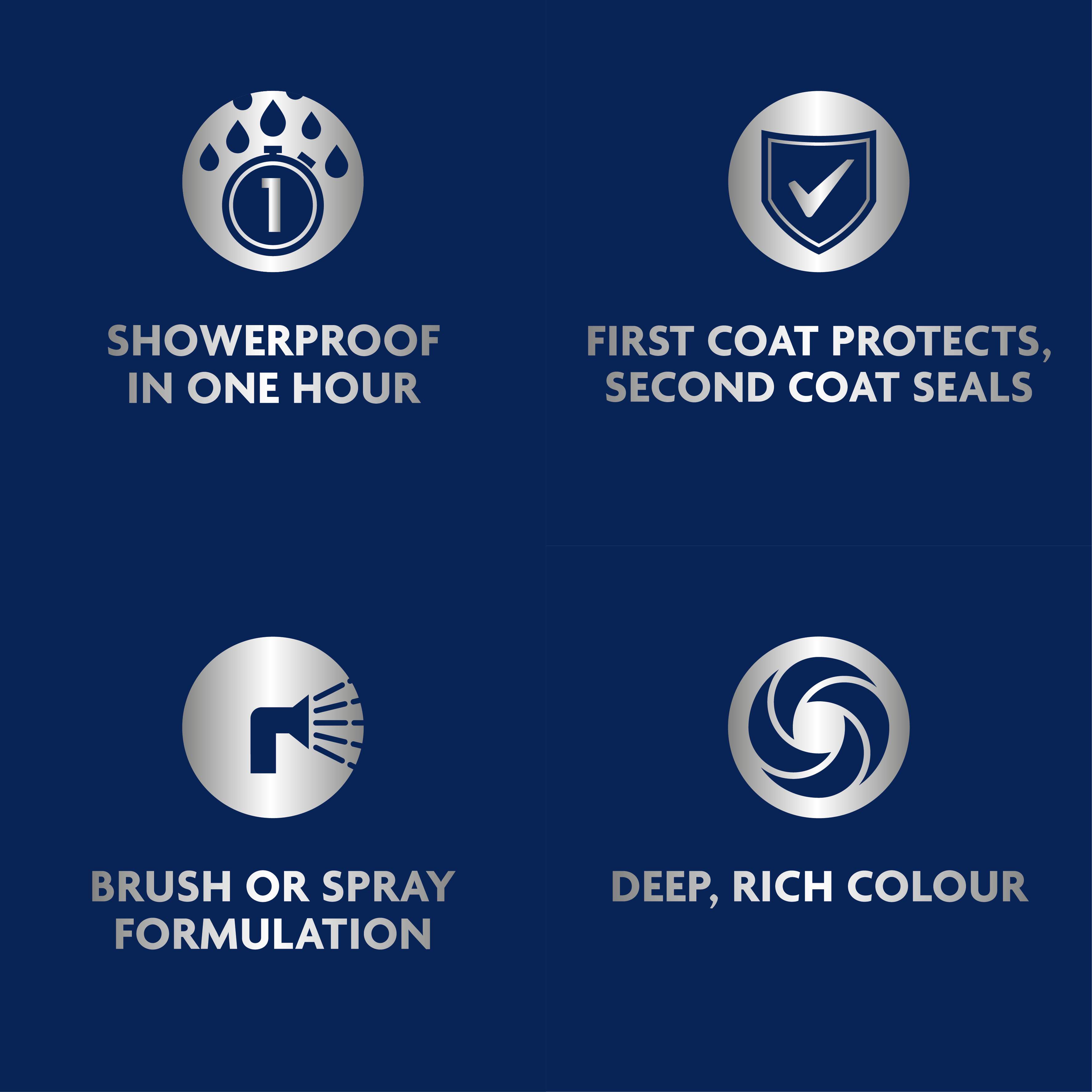 Dry time Showerproof in one hour, completely dry in four hours
