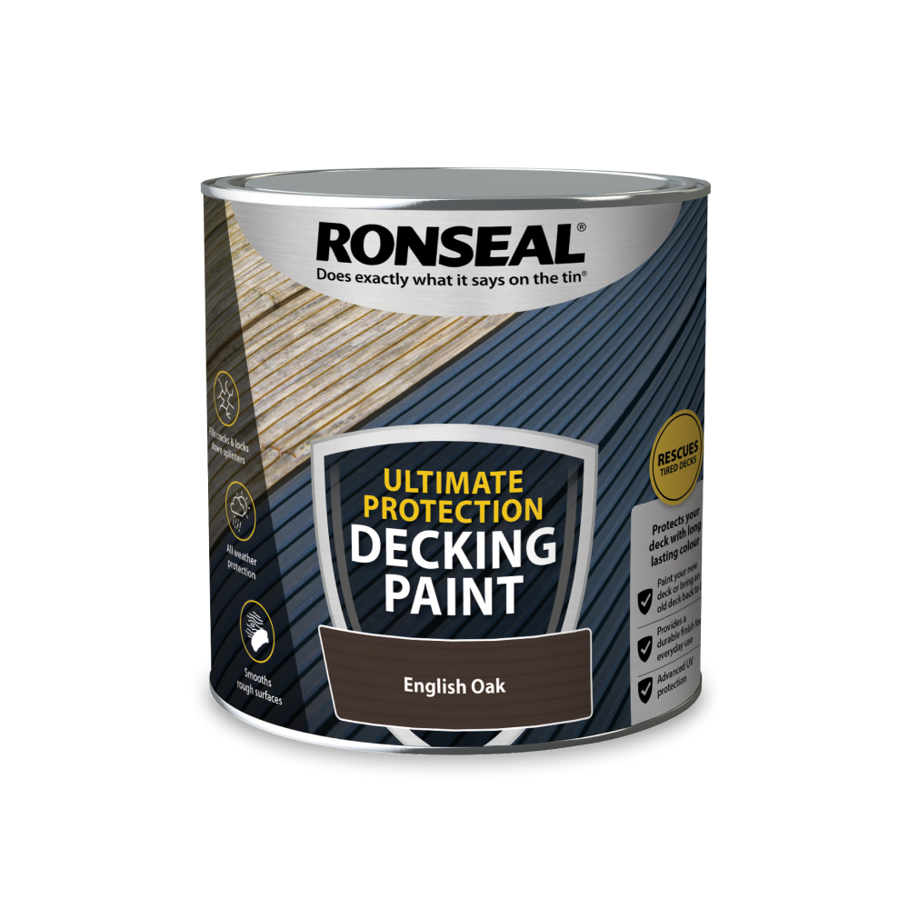 Ronseal Decking Oil provides decking with natural looking protection against the weather and foot traffic. It takes 2 hours to dry, and can be re-coated in 6 hours. If you have less time, try our Ultimate Protection Decking Oil which offers the same protection levels but is dry in just 90 minutes and can be recoated in 4 hours.